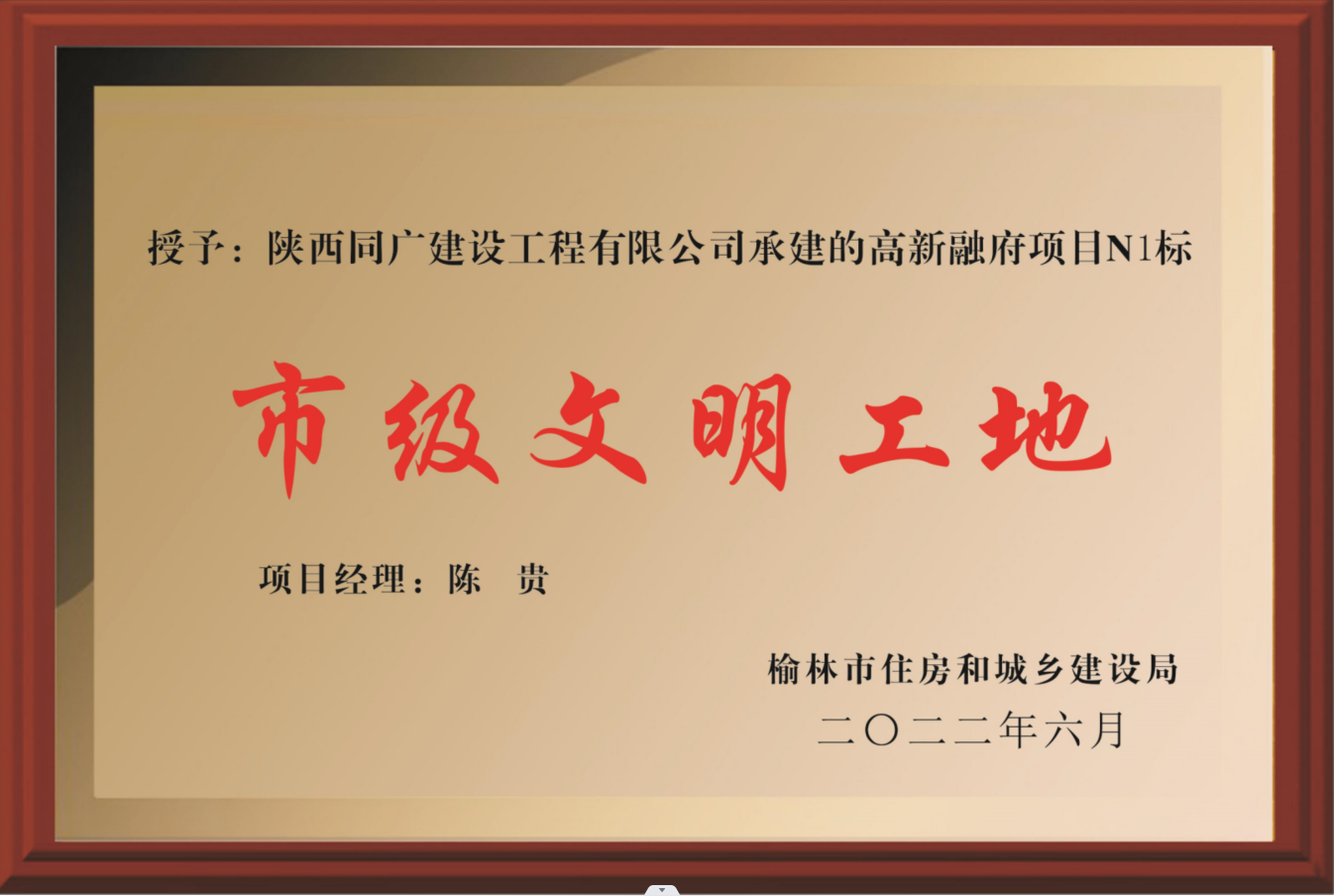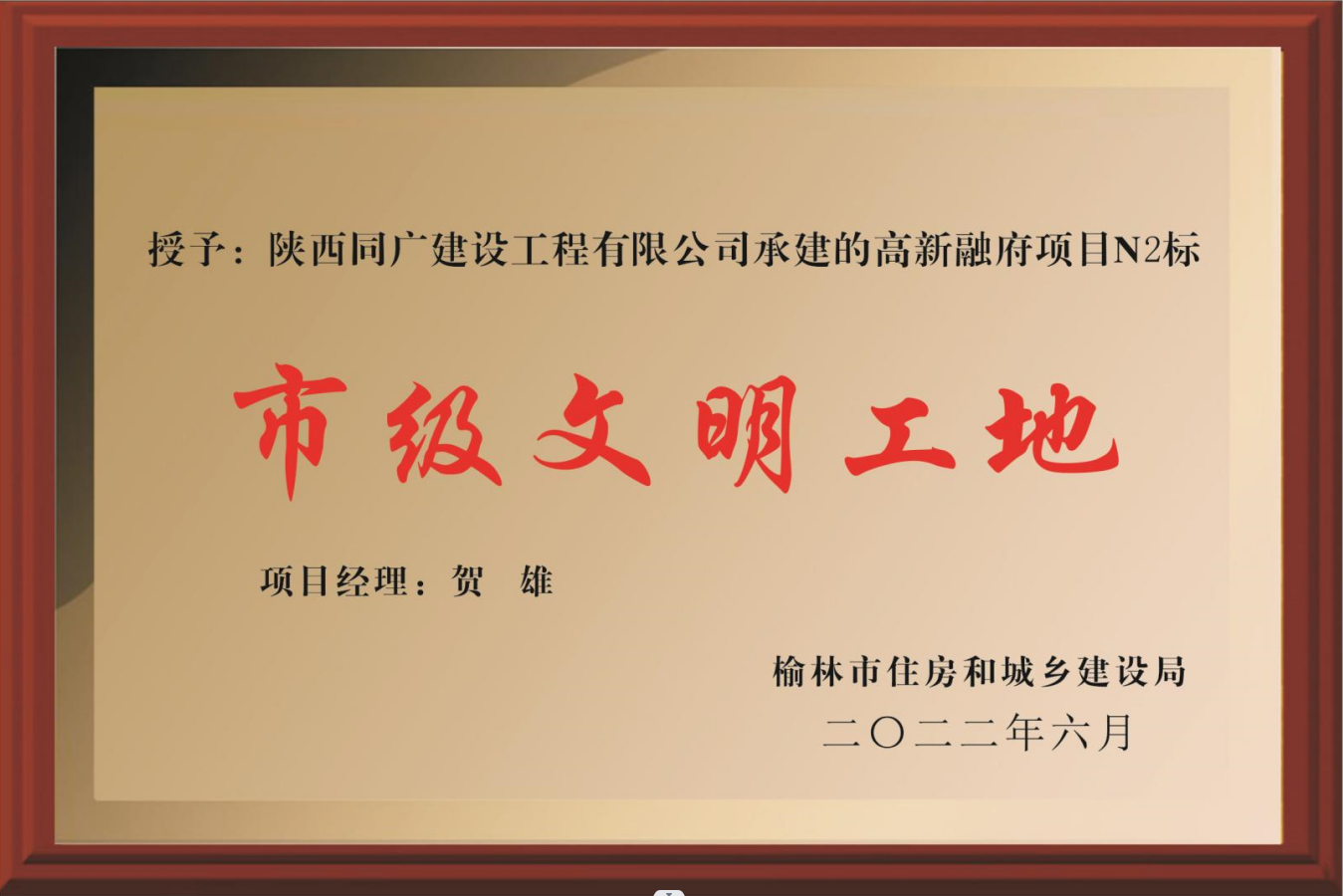 近日,im体育官方下载地产承建的yb体育app融府项目N1和N2标段被榆林市住房和城乡建筑局授予“2022年度市级文明工地”荣誉称号。